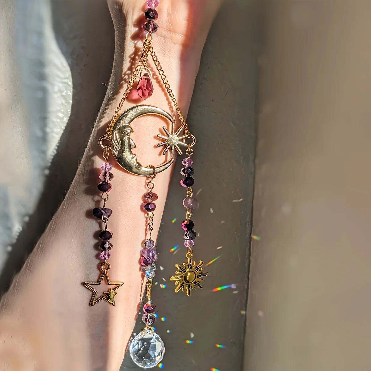 Celestial Moon Goddess Crystal Sun Catcher – Amethyst Chakra Rainbow Prism